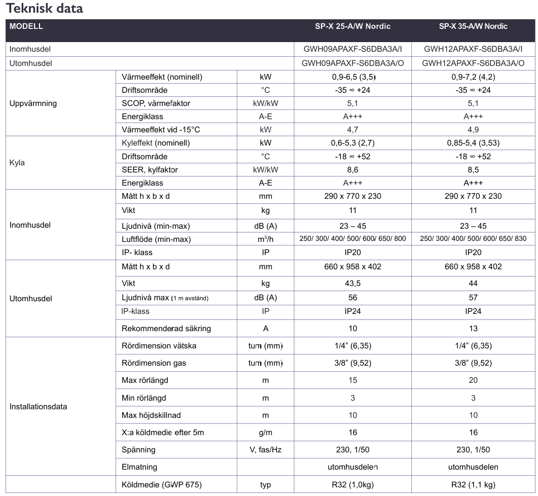 • Köldmedium: R32 – låg miljöpåverkan och effektiv drift