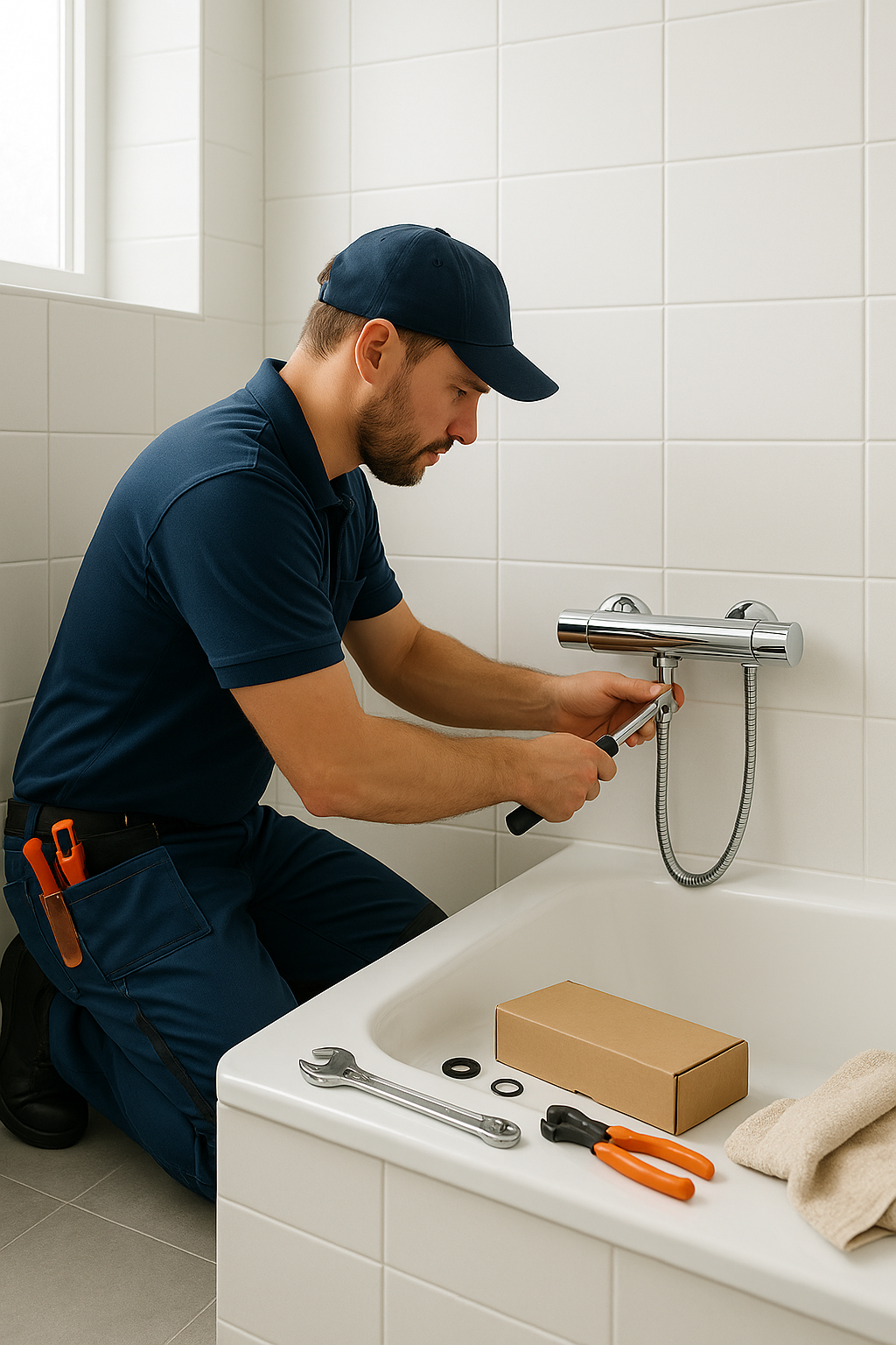När du beställer installation av en badkarsblandare hos oss får du ett tryggt och professionellt utfört arbete av certifierade installatörer. Vi ser till att installationen sker enligt svenska branschregler och att allt fungerar som det ska – så att du kan njuta av ditt badkar utan bekymmer.