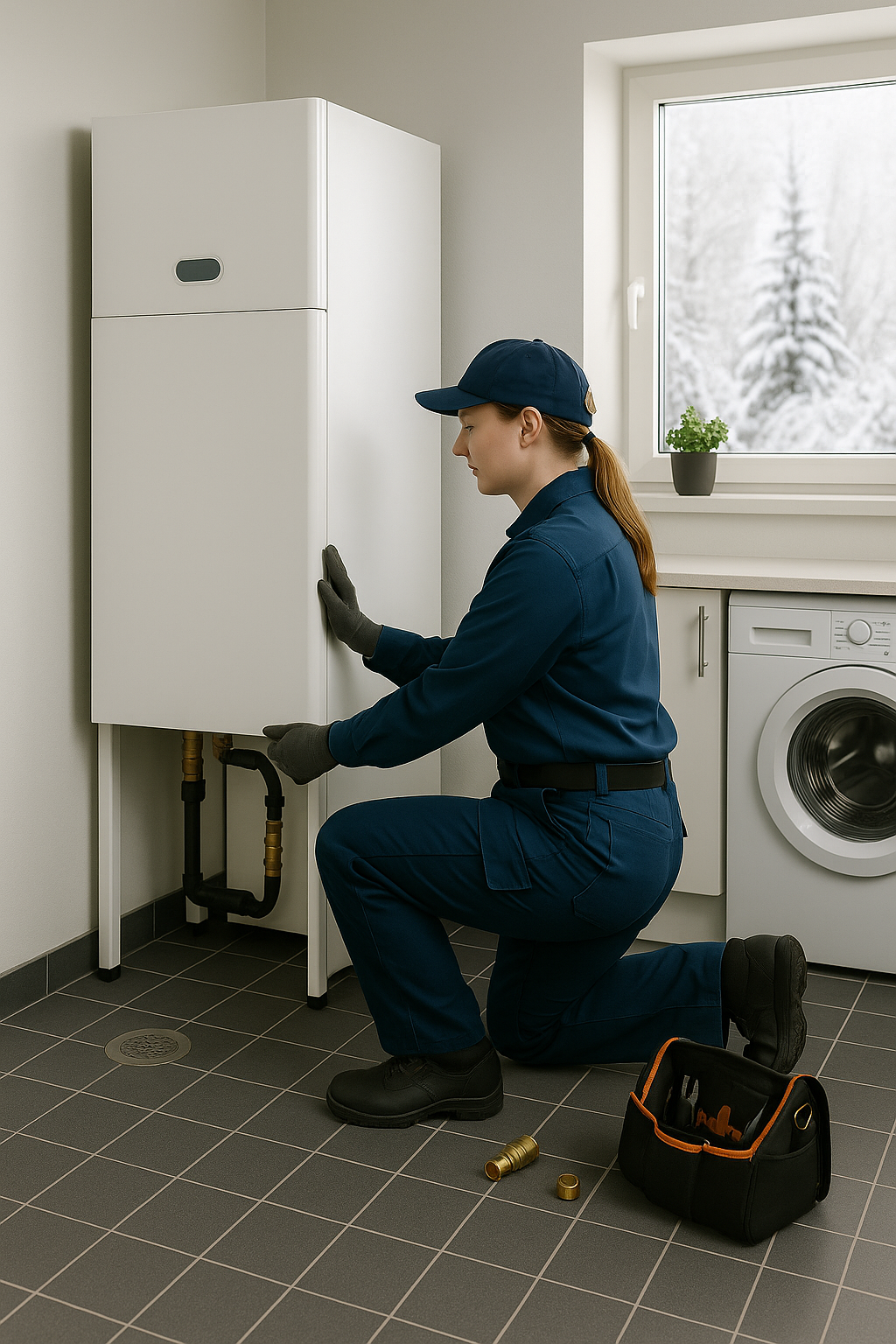 Vår standardinstallation utförs av certifierad kyltekniker/VVS-montör och följer gällande branschregler. Som kund behöver du vara hemma för att gå igenom arbetet och signera installationsprotokollet.