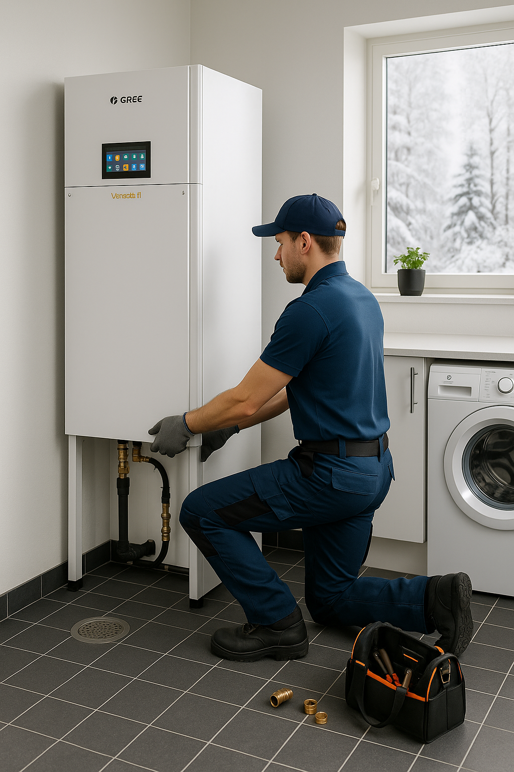 Vår standardinstallation utförs av certifierad kyltekniker/VVS-montör och följer gällande branschregler. Som kund behöver du vara hemma för att gå igenom arbetet och signera installationsprotokollet.