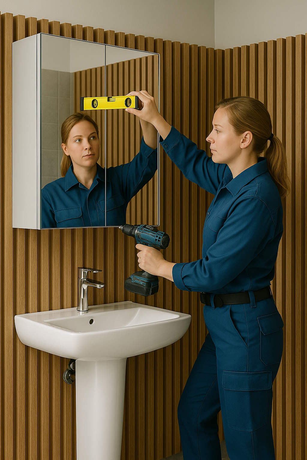 Uppgradera badrummet på ett tryggt sätt. Montigos certifierade montörer tar hand om installation av spegelskåp – från nedtagning av det gamla skåpet till upphängning, finjustering...